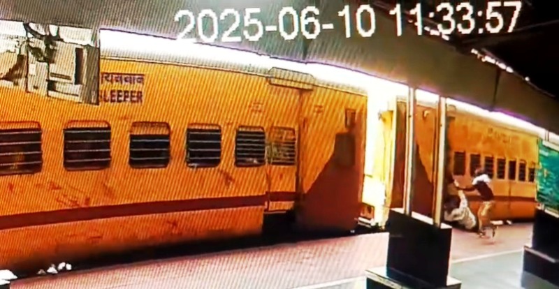 आरपीएफ निरीक्षक की सतर्कता से बची चलती ट्रेन में चढ़ते समय गिरने वाले यात्री की जान.