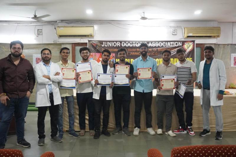 रायपुर,14 जून 2025. विश्व रक्तदान दिवस के अवसर पर डॉ. भीमराव अम्बेडकर स्मृति चिकित्सालय, रायपुर में जूनियर डॉक्टर्स एसोसिएशन और मॉडल ब्लड बैंक सेंटर के संयुक्त तत्वावधान में एक भव्य रक्तदान शिविर का आयोजन किया गया। इस पुनीत अवसर पर 100 से अधिक रक्तदाताओं ने बढ़-चढ़कर भाग लिया और अपने रक्त के माध्यम से अनगिनत जरूरतमंद जीवनों को संजीवनी देने का संकल्प लिया।