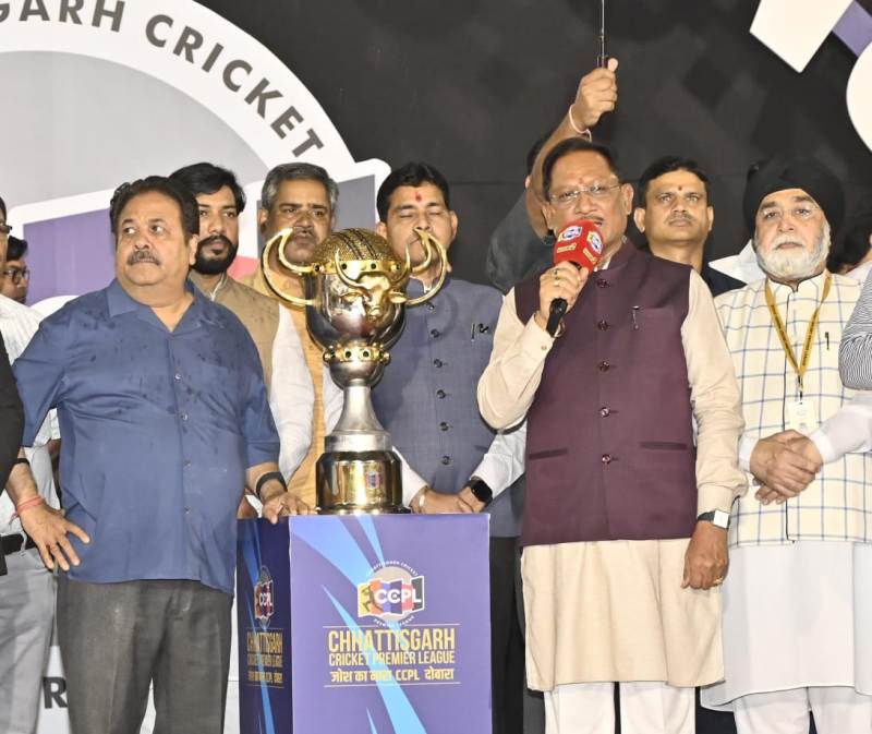 छत्तीसगढ़ क्रिकेट प्रीमियर लीग सीजन 2 के समापन समारोह को संबोधित करते हुए मुख्यमंत्री श्री साय ने कहा कि यह छत्तीसगढ़ के लिए सौभाग्य की बात है कि सीसीपीएल जैसे क्रिकेट टूर्नामेंट का यहां शानदार आयोजन किया गया। छत्तीसगढ़ में हम सभी खेलों को आगे बढ़ाने के लिए लगातार प्रयासरत हैं। छत्तीसगढ़ क्रिकेट प्रीमियर लीग के माध्यम से राज्य के प्रतिभावान क्रिकेट खिलाड़ियों को खेलने का बेहतरीन मौका मिला है। इस आयोजन के लिए छत्तीसगढ़ राज्य क्रिकेट संघ बधाई का पात्र है।