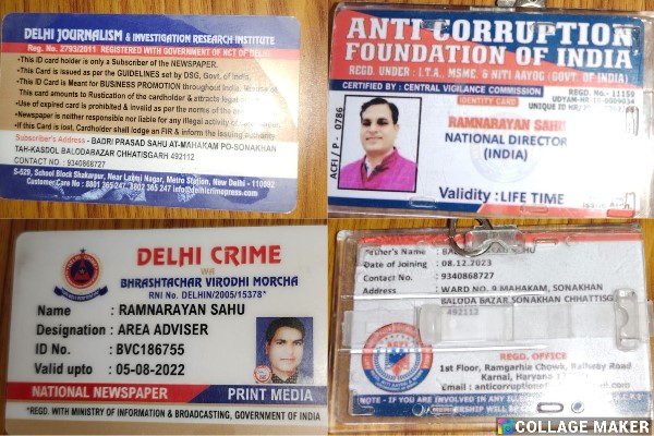 आरोपी रामनारायण एंटी करप्शन फाउंडेशन ऑफ़ इंडिया, दिल्ली जर्नलिज्म एंड इन्वेस्टिगेशन रिसर्च इंस्टीट्यूट, दिल्ली क्राइम भ्रष्टाचार विरोधी मोर्चा आदि नामक संस्थाओं का रखता था परिचय पत्र