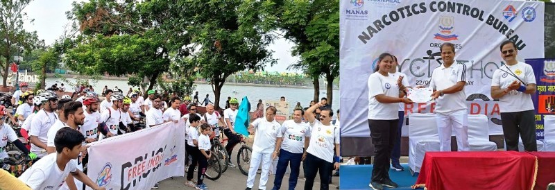 नशामुक्त भारत अभियान के तहत नारकोटिक्स कंट्रोल ब्यूरो क्षेत्रीय कार्यालय, रायपुर, छतीसगढ़ पुलिस, लीड एजेंसी रोड सेफ्टी के संयुक्त तत्वावधान में नशा के विरूद्ध अभियान के रूप में CYCLOTHON जागरूकता पखवाड़ा का शुभारंभ पुलिस मुख्यालय के नारकोटिक्स विंग के पुलिस महानिरीक्षक श्री अजय यादव के मुख्य आतिथ्य में हुआ। इस अवसर पर ए.आई.जी(ट्रैफिक) श्री संजय शर्मा एवं श्री रवि शंकर जोशी डिप्टी डायरेक्टर ऑफ एन.सी.बी. रायपुर स्पोर्टस अथॉरटी ऑफ इण्डिया रायपुर ग्रुप एवं छत्तीसगढ़ राइडर्स एसोसिएशन (सीआरए) विनय भास्कर भी उपस्थित रहे। CYCLOTHON जागरूकता कार्यक्रम MOXIHEALTH STAY FIT WITH ME के समन्वय से किया जा रहा है।