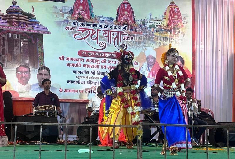 श्री जगन्नाथ रथ यात्रा महोत्सव के अंतर्गत मौसी बाड़ी प्रांगण में एक भव्य और रंगारंग सांस्कृतिक कार्यक्रम का आयोजन हुआ, जिसमें झारखंड के सुप्रसिद्ध कलाकारों और डांस ग्रुप्स ने अपनी आकर्षक प्रस्तुतियों से कार्यक्रम में चार चांद लगा दिए। श्री जगन्नाथ मंदिर समिति दोकड़ा द्वारा आयोजित इस रथ यात्रा महोत्सव में 9 दिनों तक चलने वाले धार्मिक और सांस्कृतिक कार्यक्रमों की श्रृंखला के अंतर्गत यह सांस्कृतिक संध्या विशेष आकर्षण का केंद्र रही।