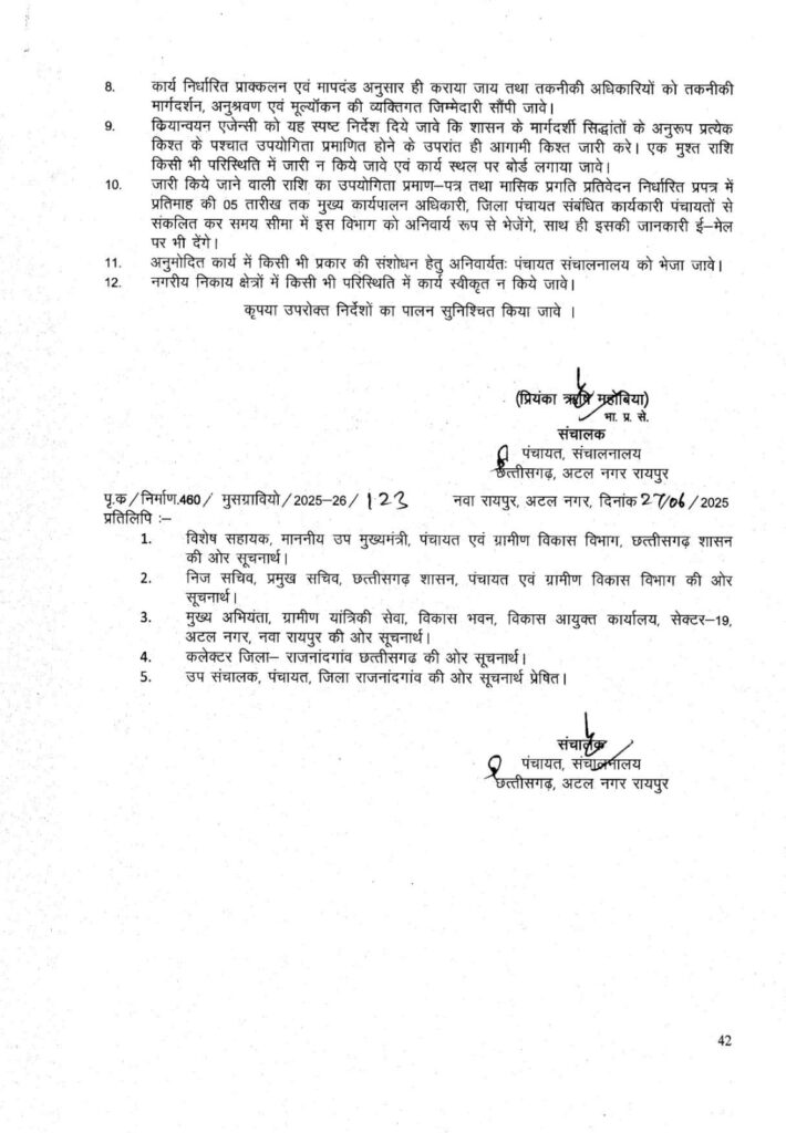 राजनांदगांव जिले में मुख्यमंत्री समग्र ग्रामीण विकास योजना 2025-26 के अंतर्गत 2 करोड़ 13 लाख से अधिक की स्वीकृति, ग्रामों में शेड, सीसी रोड, नाली व सामुदायिक भवन का होगा निर्माण.