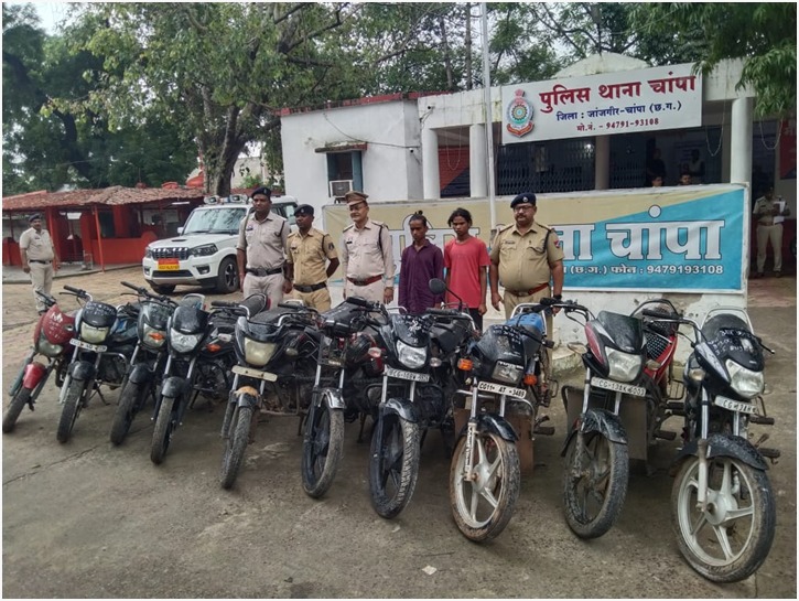 दोनो ने रेलवे स्टेशन एरिया से दो पहिया वाहन चोरी करना स्वीकार किया, रेलवे सुरक्षा बल पोस्ट प्रभारी, चांपा द्वारा इसकी सूचना लोकल पुलिस थाना-चांपा को दिया गया तथा इन दोनों आरोपियों की निशानदेही पर रेलवे सुरक्षा बल एवं लोकल पुलिस थाना चांपा के संयुक्त ऑपरेशन से चांपा, सक्ती एवं कोरबा से कुल- 10 दो पहिया वाहन की बरामदगी की गयी है, जिसकी कुल कीमत – 8,00,000/- (आठ लाख) रूपये आंकी गयी है I
