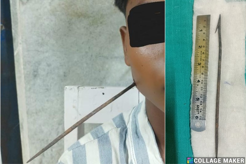 चेहरे के अंदर लार ग्रंथि में घुसे लोहे के तीरनुमा औजार को निकाला बिना नस को क्षति पहुँचाए, ईएनटी के डॉक्टरों ने किया जटिल ऑपरेशन