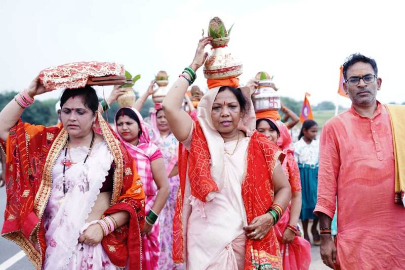मैनी नदी तट से निकाली गई ऐतिहासिक कलश यात्रा, मुख्यमंत्री की धर्मपत्नी श्रीमती कौशल्या साय हुईं सम्मिलित.