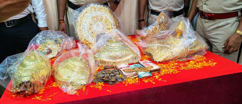 सोने का हार, मुकुट, कुण्डल, 4 नग छत्तर, नकदी 10,000 रूपये, घटना में प्रयुक्त रॉड, एक मोटर सायकल बजाज प्लेटिना, संतरा रंग के टी शर्ट कुल 26 लाख 80 हजार रूपये।