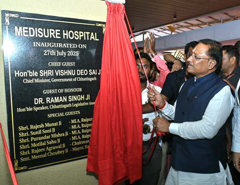 रायपुर, 27 जुलाई 2025/ मुख्यमंत्री श्री विष्णु देव साय ने आज राजधानी रायपुर के कमल विहार सेक्टर-11ए में मेडिश्योर हॉस्पिटल का शुभारंभ किया। इस अवसर पर उन्होंने कहा कि राज्य सरकार स्वास्थ्य अधोसंरचना को सुदृढ़ करने के लिए निरंतर प्रयासरत है, जिससे जनसामान्य को गुणवत्तापूर्ण चिकित्सा सुविधाएँ सुलभ हो सकें।