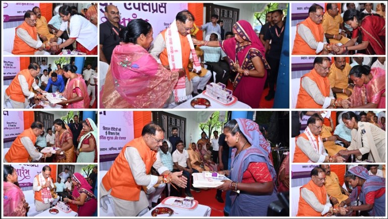 मुख्यमंत्री को प्रधानमंत्री आवास योजना,महतारी वंदन योजना से लाभान्वित दीदीयां आंगनबाड़ी, कार्यकर्ता सहायिका, और मितानिन स्व सहायता समूह की दीदियों ने राखी बांधी। मुख्यमंत्री ने सभी दीदियों को रक्षाबंधन की हार्दिक बधाई और शुभकामनाएं दी उन्होंने कहा कि रक्षा बंधन का पवित्र त्योहार भाई और बहनों की आपसी रिश्तों और प्रतीक का त्योहार है। उन्होंने कहा कि रक्षाबंधन त्यौहार के पर्व पर भाई बहनों की रक्षा का संकल्प लेती है।