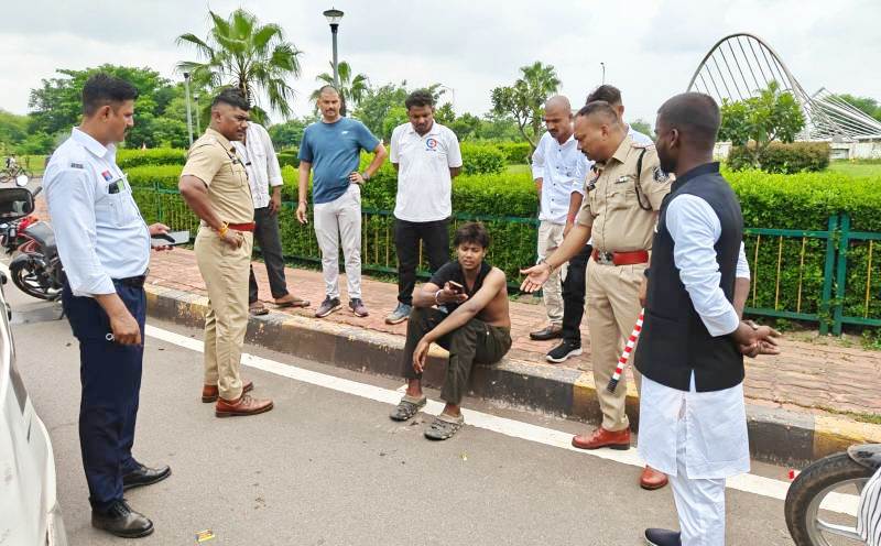 स्टंट करते समय गाड़ी से गिरकर घायल हुए लड़के को पुलिस ने पहुँचाया हास्पिटल.