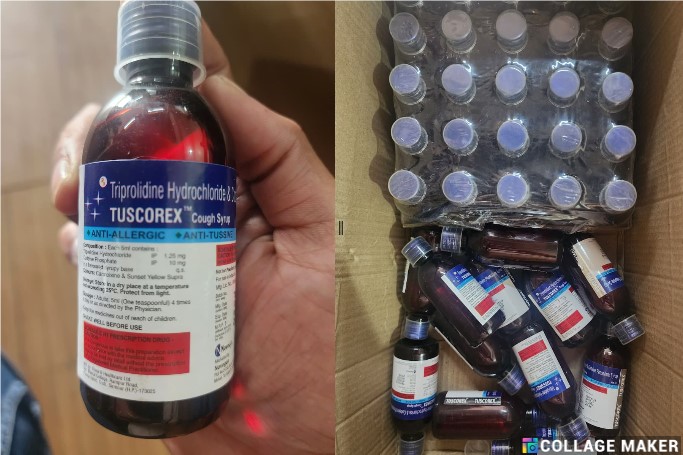 आरोपियों के कब्जे से कुल 100 शीशी प्रत्येक में 100 ML प्रतिबंधित नशीली सिरप TUSCOREX SYRUP किया गया है जप्त, जिसकी कुल कीमत 25000/- रूपये है.