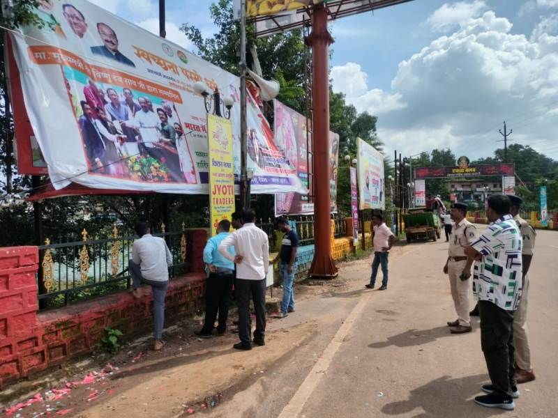 सड़क किनारे अवैध बैनर पोस्टर को लेकर SSP जशपुर सख्त : नगर पालिका की टीम के साथ मिलकर,यातायात पुलिस कर रही है कार्यवाही, निकाल रहे हैं अवैध होर्डिंग, पोस्टरों को