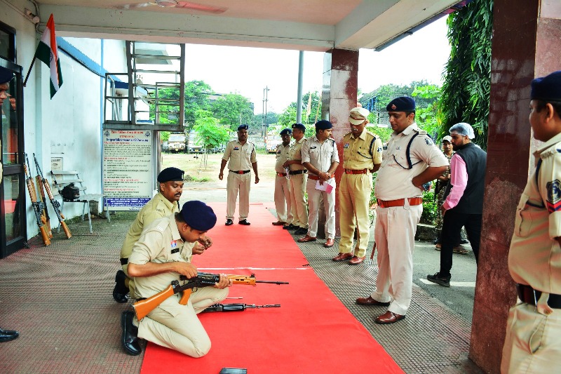 थाना प्रभारी निरीक्षक राकेश मिश्रा के नेतृत्व में सशस्त्र जवानों ने पुलिस अधीक्षक को सलामी दी। गणवेश में उत्कृष्टता दिखाने वाले जवानों को मौके पर ही प्रोत्साहन स्वरूप ईनाम प्रदान किया गया। जवानों ने ड्रील अभ्यास और रायफल एक्सरसाइज का प्रदर्शन भी किया।