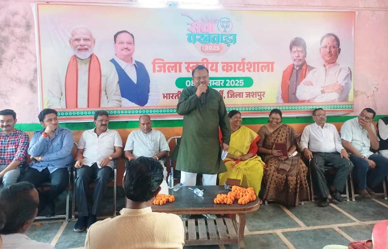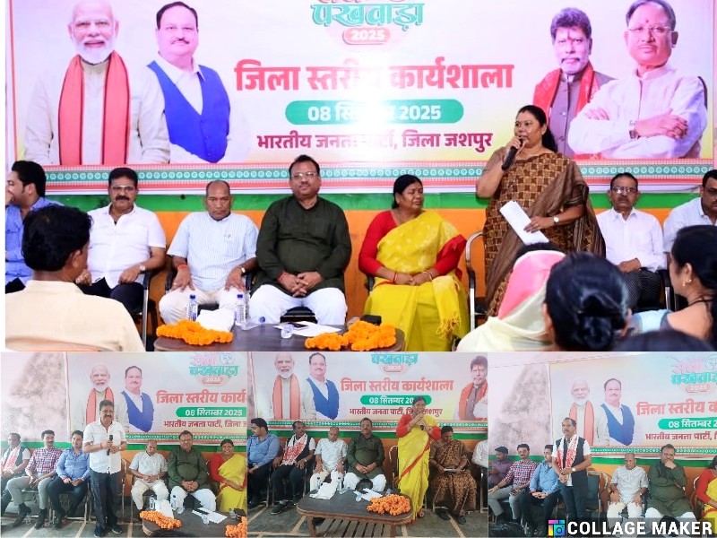 जशपुर. 08 सितंबर 2025 : जशपुर में भाजपा की जिला स्तरीय कार्यशाला का आयोजन किया गया, जिसमें कार्यकर्ताओं और पदाधिकारियों ने सेवा पखवाड़ा को लेकर रणनीति बनाई। नेताओं ने कहा कि “सेवा ही संगठन” का मंत्र ही भाजपा की असली पहचान है। सेवा पखवाड़ा के दौरान जिले भर में स्वास्थ्य शिविर, स्वच्छता अभियान, वृक्षारोपण, पोषण जागरूकता और जनजागरण रैलियों का आयोजन किया जाएगा।