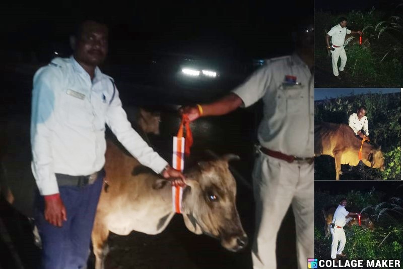 हाईवे पर घुमंतू मवेशियों के गले में यातायात पुलिस ने लगाई रेडियम पट्टी, सड़क हादसों पर अंकुश लगाने की विशेष मुहिम.