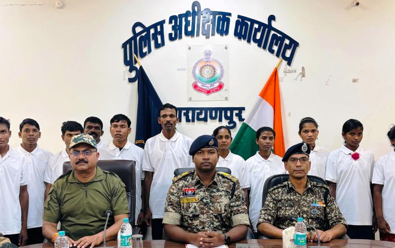 नक्सल उन्मुलन अभियान और अति संवेदनशील अंदरूनी क्षेत्रों में लगातार कैम्प स्थापित होने से पुलिस के बढ़ते प्रभाव व नक्सलियों के अमानवीय, आधारहीन विचारधारा एवं उनके शोषण, अत्याचार तथा बाहरी नक्सलियों के द्वारा भेदभाव करने तथा स्थानीय आदिवासियों पर होने वाले हिंसा से तंग आकर आज दिनांक 08 अक्टूबर 2025 को श्री रोबिनसन गुड़िया (भा.पु.से.) पुलिस अधीक्षक नारायणपुर के समक्ष पीएलजीए मिलिट्री कंपनी नंबर-1 डिप्टी कमाण्डर, पीएलजीए मिलिट्री कंपनी नंबर-1 सदस्य, उत्तर ब्यूरो टेक्निकल टीम (डीवीसीएम), माड़ डिवीजन स्टाप टीम एसीएम, पार्टी सदस्य, कुतुल एलजीएस सदस्य, जनताना सरकार सदस्य और मिलिशिया सदस्य सहित 16 माओवादियों ने आत्मसमर्पण किया।