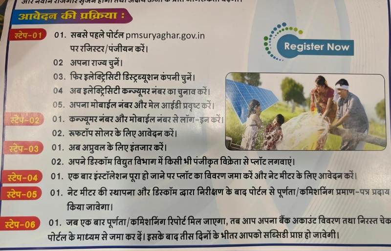 पीएम सूर्यघर मुक्त बिजली योजना ऑनलाइन पोर्टल पर लॉग ऑन कर या नजदीकी वितरण केन्द्रों, उप-संभाग, संभागीय कार्यालय से संपर्क किया जा सकता है। प्रति केव्ही कुल खर्च लगभग 65,000 है। इस योजना का लाभ उठाकर अपने बिजली बिल में कमी ला सकते हैं और सौर ऊर्जा का उपयोग करके पर्यावरण की रक्षा में भी योगदान कर सकते हैं।
