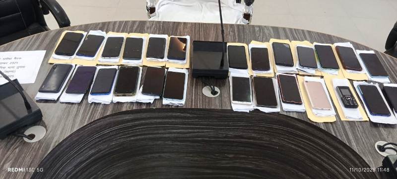 आज दिनांक 11 अक्टूबर 2025 को साइबर सेल जशपुर के द्वारा पुलिस अधीक्षक कार्यालय जशपुर के कंट्रोल रूम में एक विशेष कार्यक्रम का आयोजन किया गया। जिसमें की सायबर सेल के द्वारा जिले के विभिन्न थाना/चौकी क्षेत्रों में चोरी व गुम हुए मोबाइल फोन को ढूंढ कर उनके मालिकों के सुपुर्द किया गया।