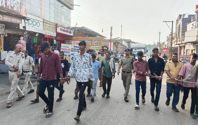 14 आरोपियों को गिरफ्तार कर चौकी सिलतरा क्षेत्रांतर्गत ग्राम सांकरा के बाजार चौक में निकाला गया उनका जुलूस.