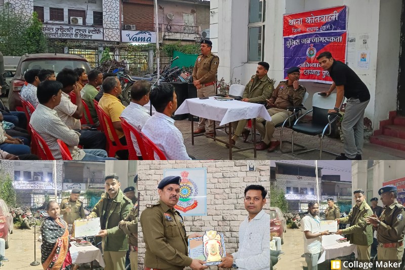 रायगढ़ : रायगढ़ कोतवाली थाना परिसर में 22 नवंबर 2025 को आयोजित मासिक बैठक में विभिन्न क्षेत्रों में उत्कृष्ट योगदान देने वाले 14 श्रेष्ठ नागरिकों को सम्मानित किया गया। नगर पुलिस अधीक्षक मयंक मिश्रा की अध्यक्षता में हुए इस कार्यक्रम में जनप्रतिनिधियों, ऑटो चालक संगठन और स्थानीय समाजसेवियों की सक्रिय भागीदारी रही। सम्मान समारोह का उद्देश्य सामाजिक सहयोग, जागरूकता और पुलिस–जन सहभागिता को मजबूत करना था।