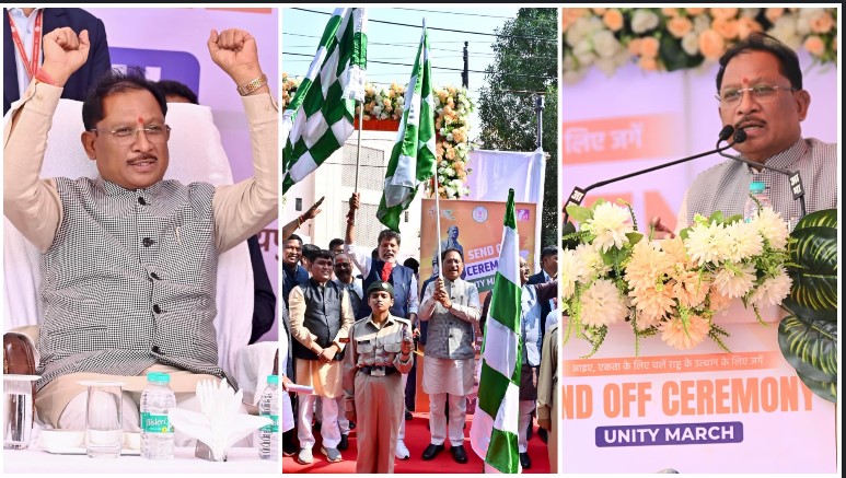 मुख्यमंत्री विष्णुदेव साय ने यूनिटी मार्च के लिए राज्य के 68 युवाओं के दल को हरी झंडी दिखाकर किया रवाना