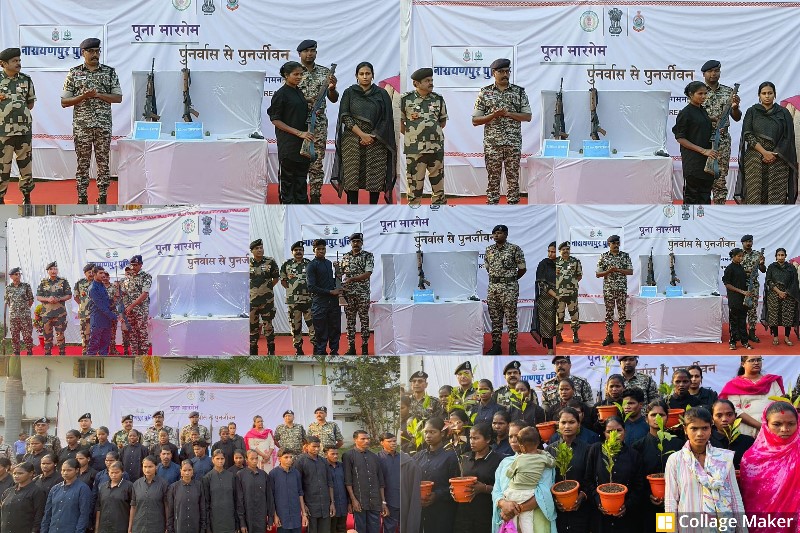 नारायणपुर : नारायणपुर जिले में “पूना मारगेम : पुनर्वास से पुनर्जीवन” पहल को बड़ी सफलता मिली है, जहाँ 28 माओवादी कैडरों—जिनमें ₹89 लाख के इनामी 19 महिला माओवादी भी शामिल हैं—ने हिंसा का रास्ता छोड़कर सामाजिक मुख्यधारा में लौटने का निर्णय लिया। यह उपलब्धि बस्तर पुलिस, स्थानीय प्रशासन और सुरक्षा बलों के संयुक्त प्रयासों से संभव हुई है, जो क्षेत्र में स्थायी शांति, विश्वास और विकास का मार्ग प्रशस्त कर रही है।