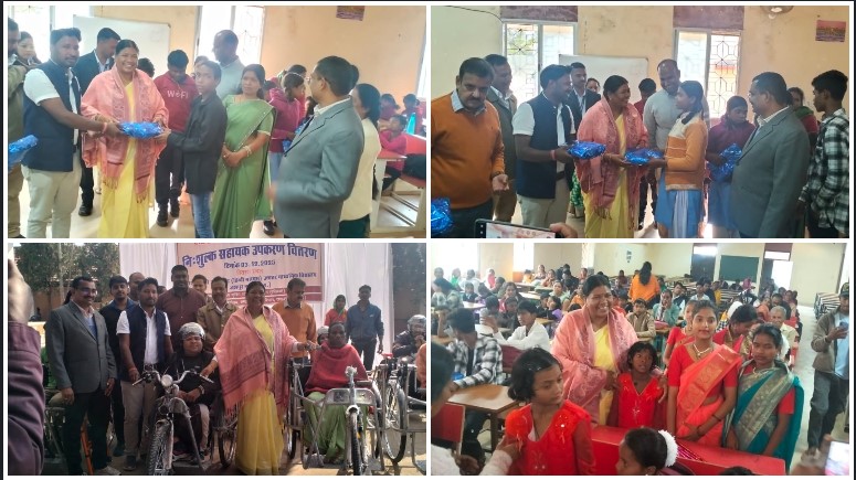 दिव्यांगजनों को वितरित किए गए मोटराईज्ड ट्राईसाईकिल, बैसाखी, व्हीलचेयर, एम.आर किट, सहित श्रवण यंत्र