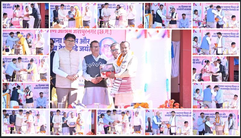 जशपुर : अखिल भारतीय वनवासी कल्याण आश्रम के 73वें स्थापना दिवस एवं बाला साहब देशपांडे जयंती के अवसर पर आज कल्याण आश्रम विद्यालय परिसर में वार्षिकोत्सव और स्थापना दिवस कार्यक्रम का आयोजन किया गया। कार्यक्रम में मुख्य अतिथि वित्त मंत्री श्री ओ.पी. चौधरी एवं विशिष्ट अतिथि के तौर पर नागपुर हाईकोर्ट के अधिवक्ता श्री गजानन असोले तथा देवमंगल मेमोरियल ट्रस्ट के सचिव श्री गोविंद नारायण सिंह उपस्थित रहे। इस अवसर पर विधायक श्रीमती रायमुनी भगत, नगरपालिका जशपुर के अध्यक्ष श्री अरविंद भगत, जनपद पंचायत जशपुर के अध्यक्ष श्री गंगाराम भगत, नगर पालिका उपाध्यक्ष श्री यश प्रताप सिंह जूदेव, श्री कृष्ण कुमार राय, जिला पंचायत सदस्य श्रीमती शांति भगत सहित पार्षदगण श्री राजेश गुप्ता एवं श्री देवधन नायक तथा बड़ी संख्या में जनप्रतिनिधि एवं नागरिक उपस्थित थे।