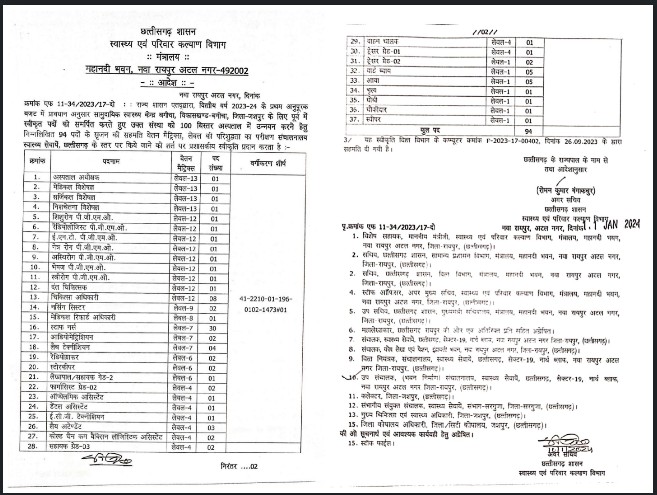 वर्ष 2024 में 30 से 100 बिस्तरीय अस्पताल में उन्नयन करते हुए 94 पदों की दी गई स्वीकृति