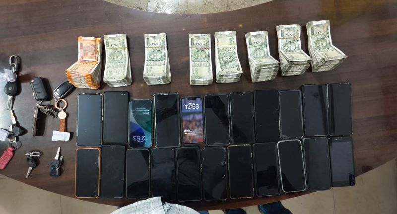 जप्त सामग्री :- 1 – नगद राशि ₹3,59,470/-, 2 – 22 नग मोबाइल फोन, 3 – 03 मोटरसाइकिल, 4 – 03 चारपहिया वाहन.