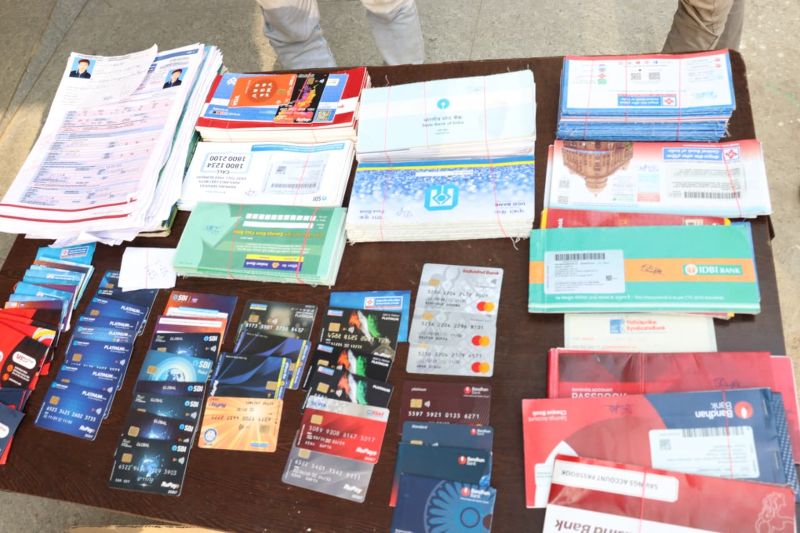आरोपियों के कब्जे से कुल 101 नग पासबुक, 35 नग एटीएम, 28 चेकबुक, 03 नग मोबाइल एवं 03 सिम, सिम कार्ड कवर 08 नग, एटीएम कार्ड कवर 13 नग एवं नगद रकम 01 लाख 36 हजार रुपये किया गया जप्त.