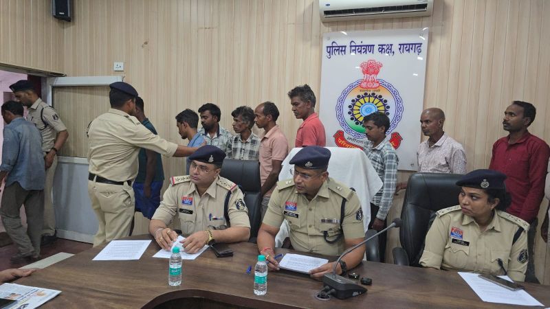 गिरफ्तार आरोपी – 1. सुखदेव चौहान पिता भादेराम उम्र 32 निवासी ग्राम धौराडांड, थाना लैलूंगा, जिला रायगढ़, 2. कार्तिक राम डूंगडूंग ग्राम धौराडांड, 3. रामकुमार वैष्णव, ग्राम जमुना, 4. केशव यादव ग्राम धौराडांड, 5. भोजराम पैंकरा, ग्राम नावागांव, 6. जगदीश पैंकरा, ग्राम किलकिला, 7. शिवचरण चौहान, ग्राम लोहडापानी, 8. सुखचरण चौहान, ग्राम लोहडापानी, 9. अमित कुमार नागवंशी, ग्राम लोहडापानी, 10. शिवप्रसाद विश्वकर्मा निवासी ग्राम मुकडेगा,
